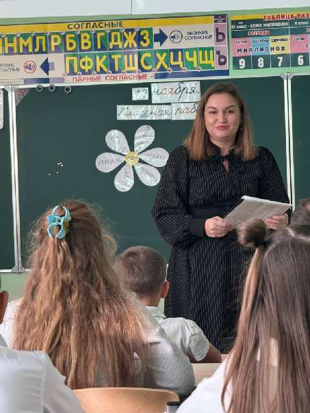 Федоренко Наталья Павловна, учитель МБОУ Некрасовской ООШ, провела урок русского языка для ребят 5 класса;
